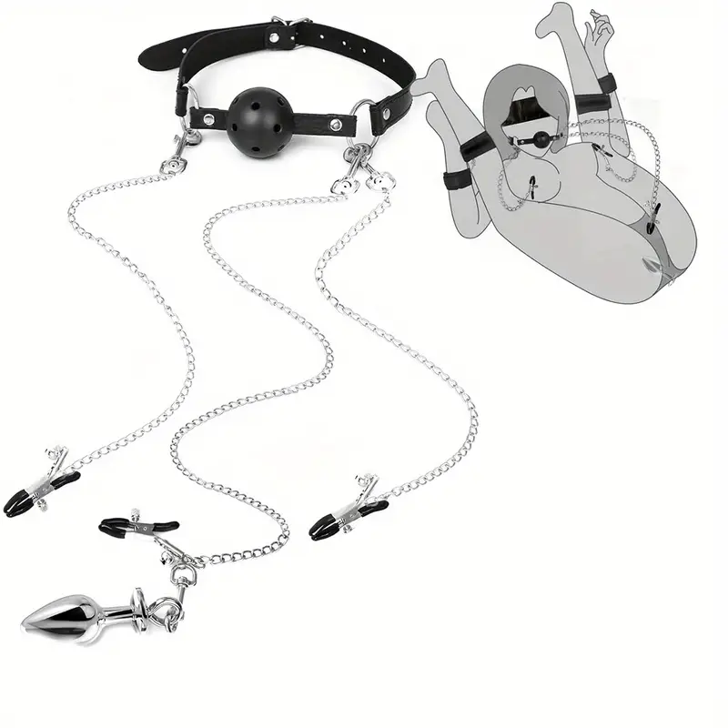 1 piece bondage bondage toy set with breathable ball gag nipple clamps clitoral clamps and butt plug